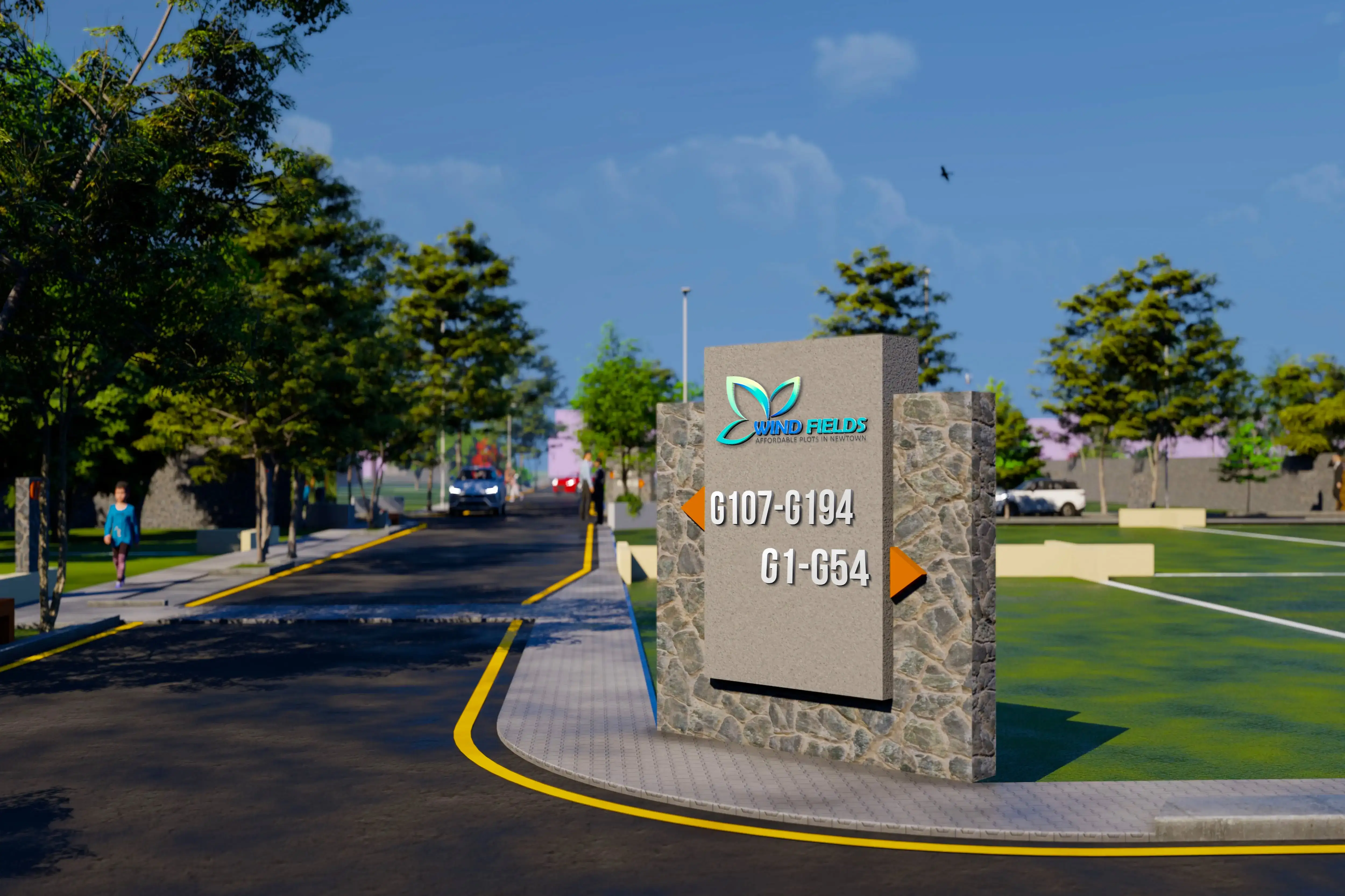 The main access road in our Wind Fields project is 50 feet wide and beautifully illuminated with streetlights on both sides, ensuring safety and elegance.